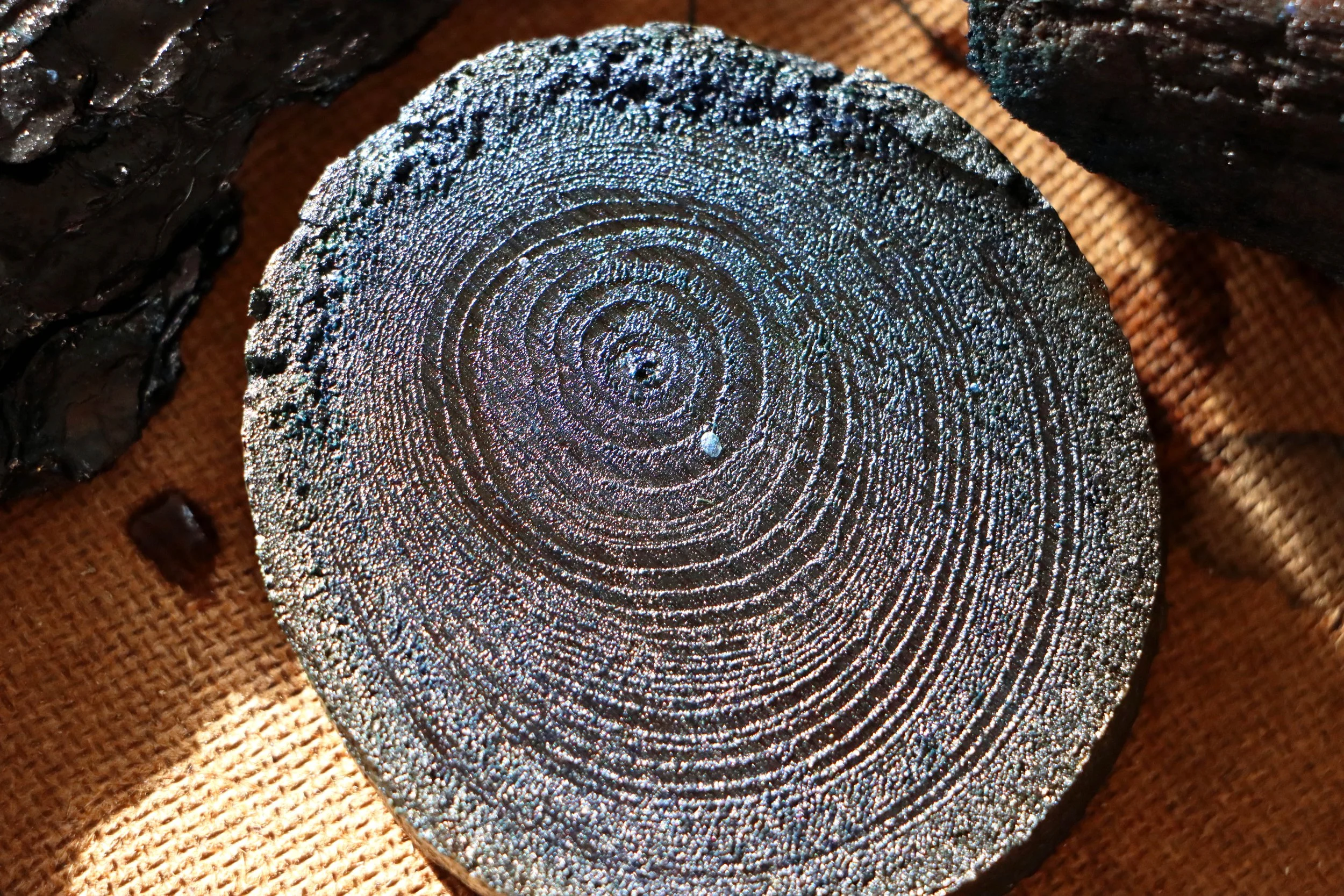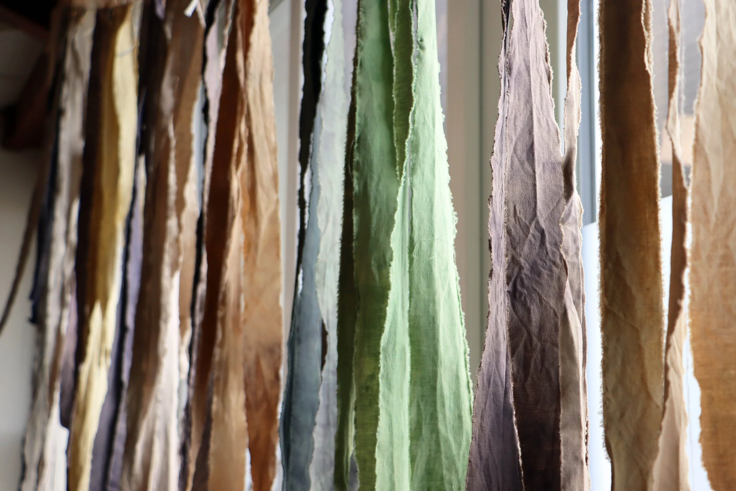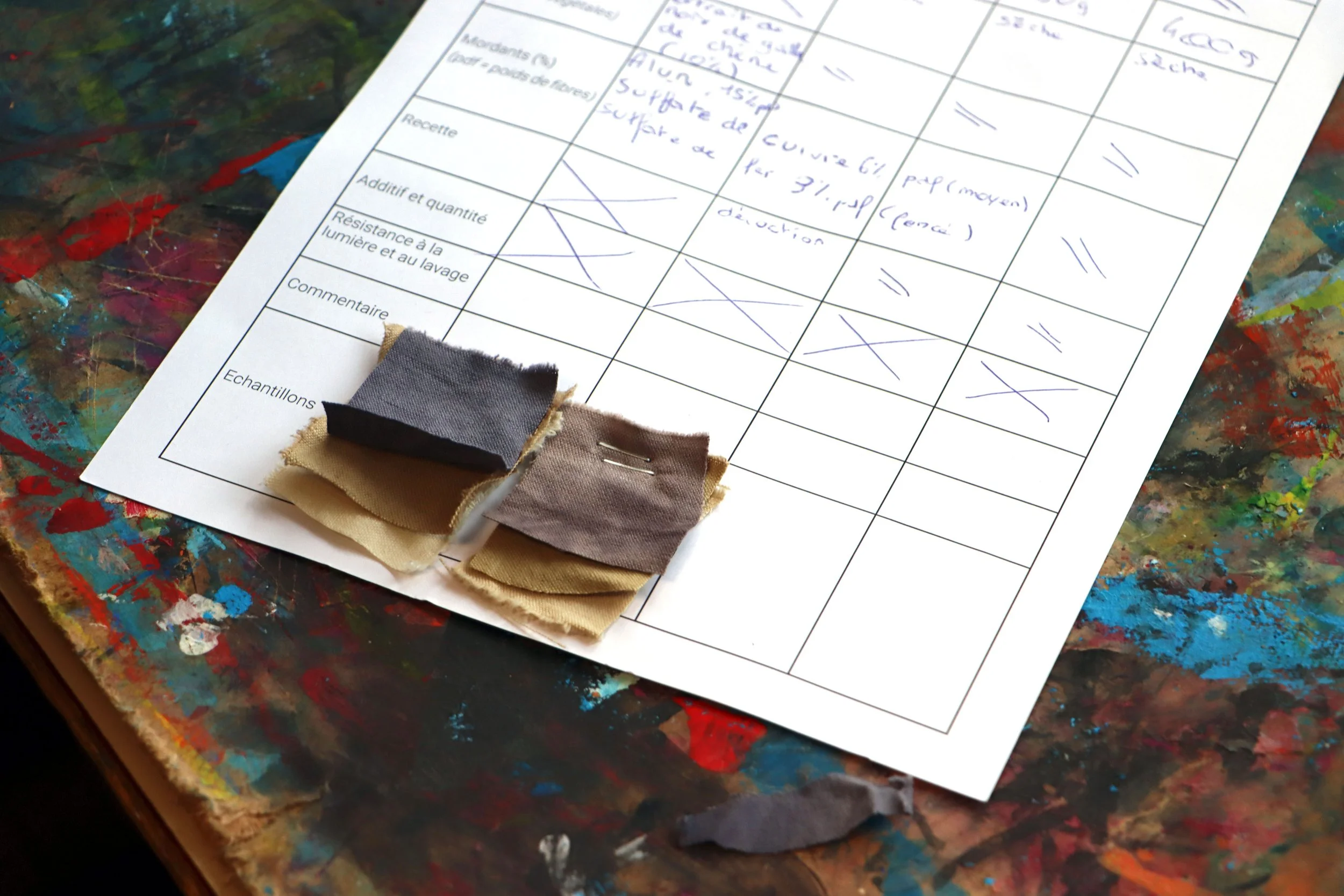 🌱 Pierre, écorce, bois, pomme de pin, coquillage, os de seiche, toile de lin local, pigment de persicaire à indigo bretonne