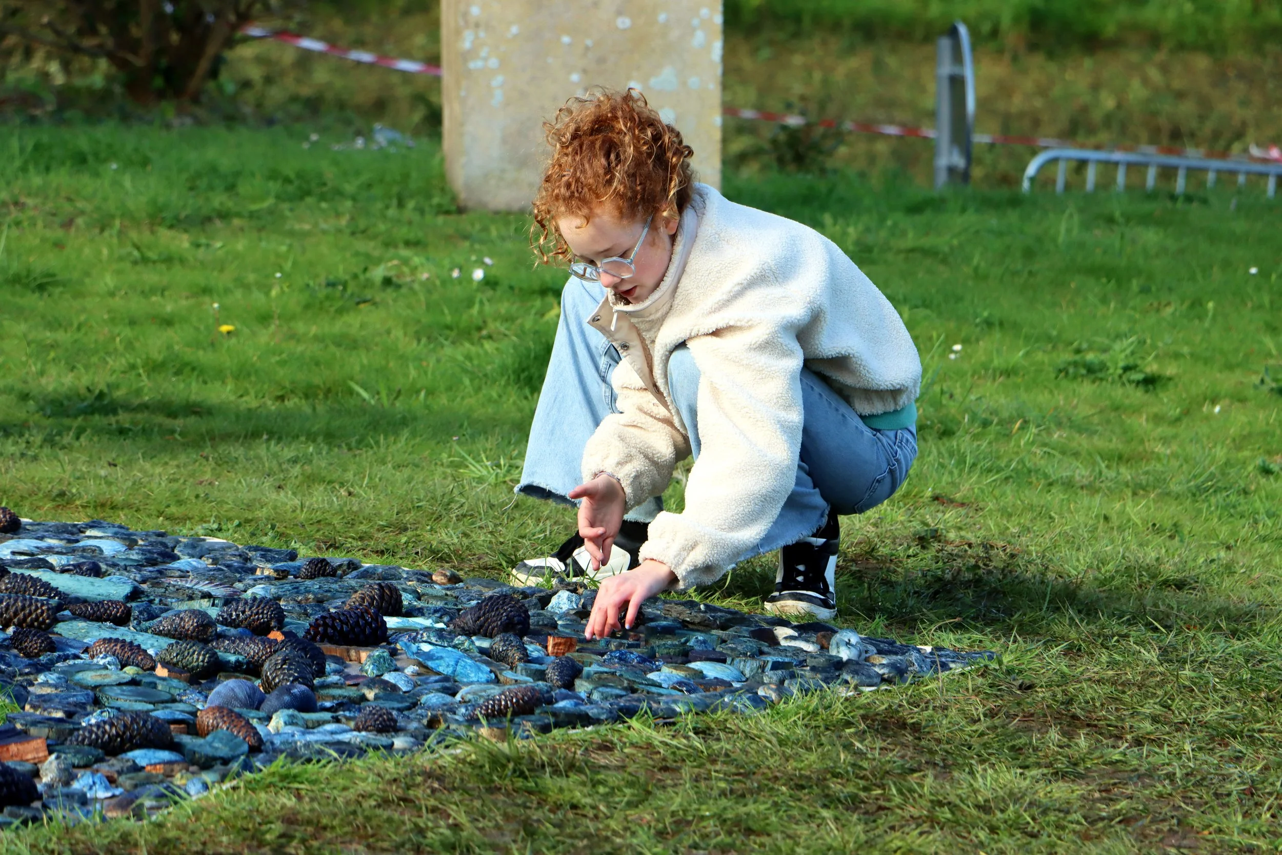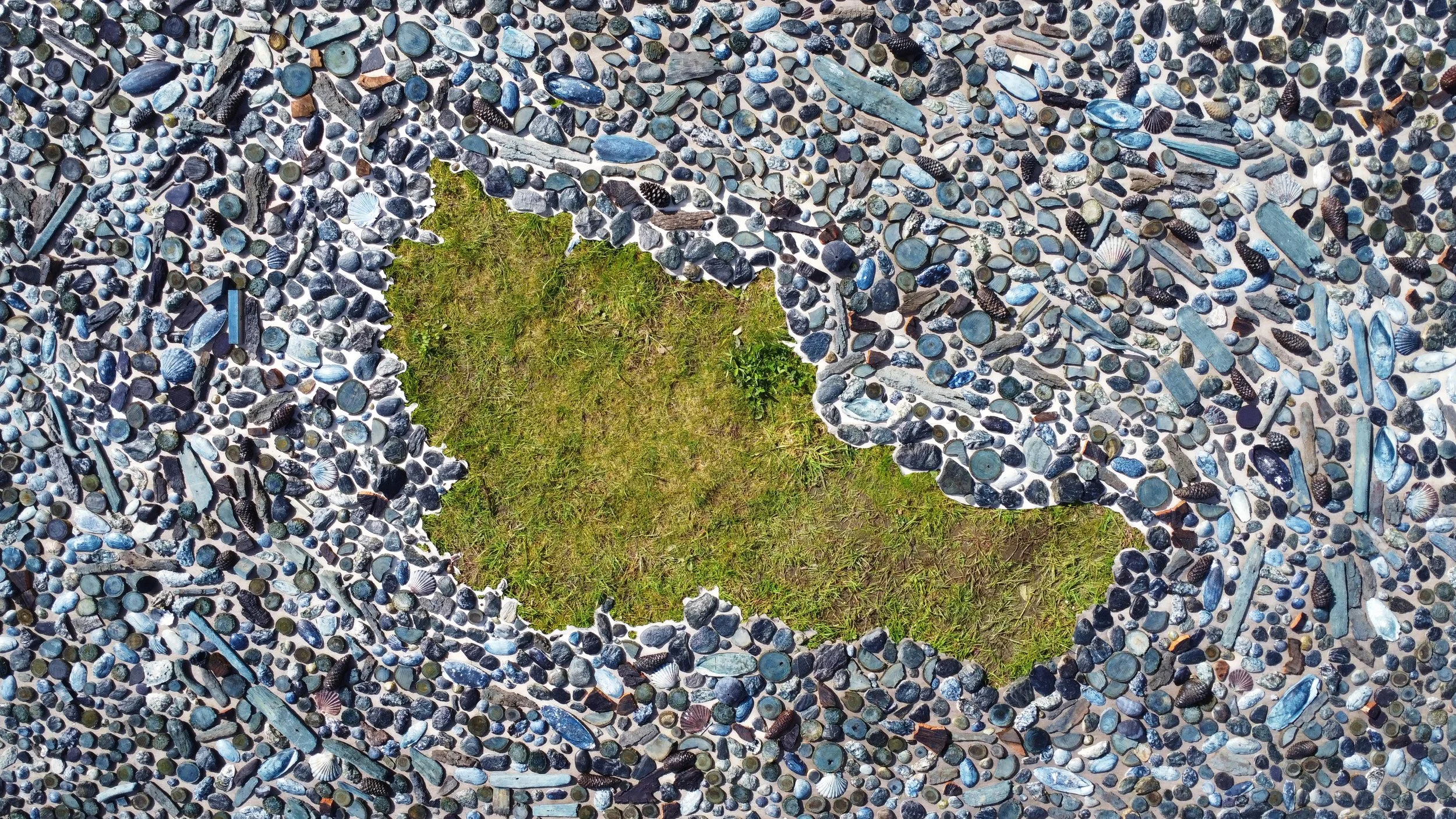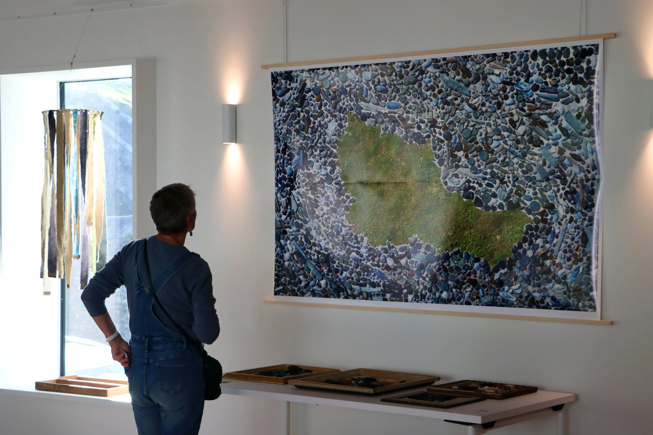 Fragments de Belle-Île-en-Mer est installé aux portes du Bois du Génie, devant la bibliothèque municipale, où sont aussi exposées les recherches préliminaires au projet. Révélée pour l’été 2024, cette cartographie géante et naturelle évolue, se ternit et se désagrège progressivement sous l’action des éléments naturels : pluie, vent, soleil, …