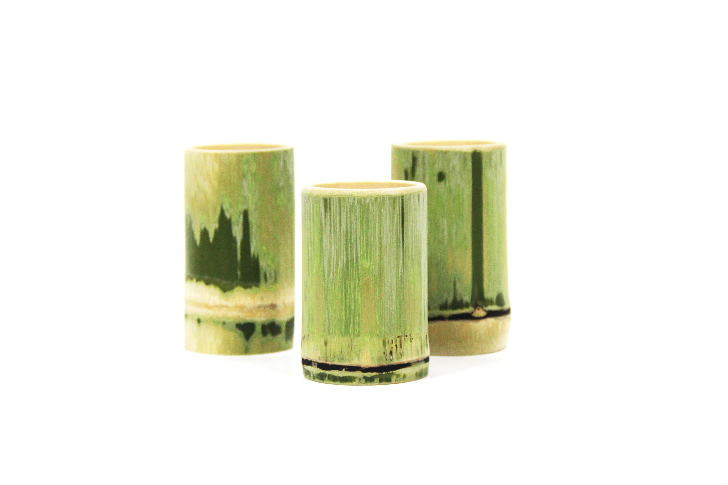 Fraîchement coupé, le bambou permet d’explorer des graphismes et textures variées par raclage, ponçage ou laquage.
